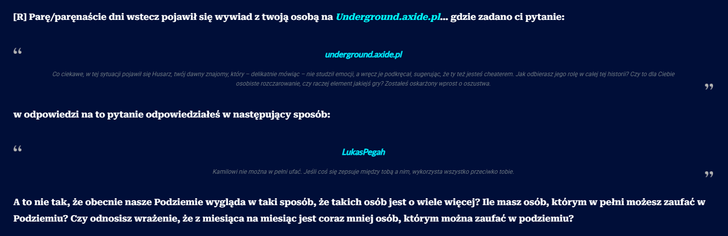 I pewnie sobie teraz pomyśleliście: no ok, było za dużo pytań odnośnie 2-3 kwestii, a próba łączenia Fragownika z Underground CS2, to czysty przypadek. Możliwe, ale ma to wpływ na odbiór Fragownika, jako tych sprzedawczyków od czerwonych, którzy nie są neutralni.