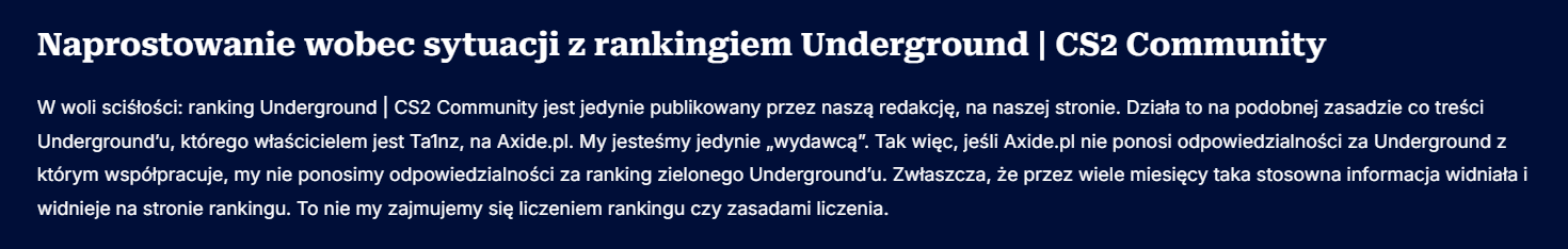 Tutaj mamy dalsze wiązanie Underground CS2 z Axide, poprzez używanie URL strony. Wiecie, tak żeby przypadkiem nikt nie pomyślał, że tam działa jakaś autonomiczna redakcja, która jednak nie ma związku z Fragownikiem.