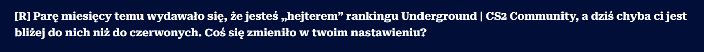 I pewnie sobie teraz pomyśleliście: no ok, było za dużo pytań odnośnie 2-3 kwestii, a próba łączenia Fragownika z Underground CS2, to czysty przypadek. Możliwe, ale ma to wpływ na odbiór Fragownika, jako tych sprzedawczyków od czerwonych, którzy nie są neutralni.