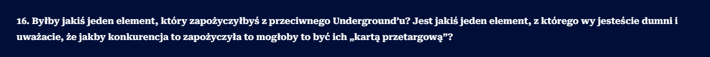 Twierdzenie, że Underground CS2 będzie szkodził wizerunkowi Axide.pl, to jest dosyć interesująca teza. Szczególnie, że w dalszej części pytania, prowadzący wywiad sam stwierdza, że strona funkcjonuje na subdomenie. Z resztą tak samo, jak na subdomenie funkcjonuje Fragownik, no ale wiadomo – to by nie pasowało do dalszej narracji.